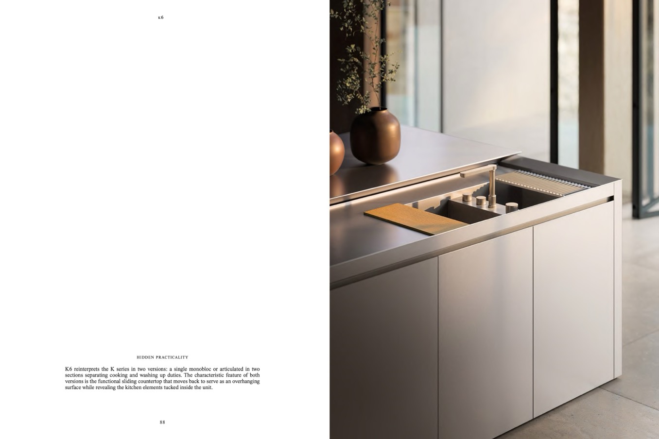 K6 reinterprets the K series in two versions: a single monobloc or articulated in two