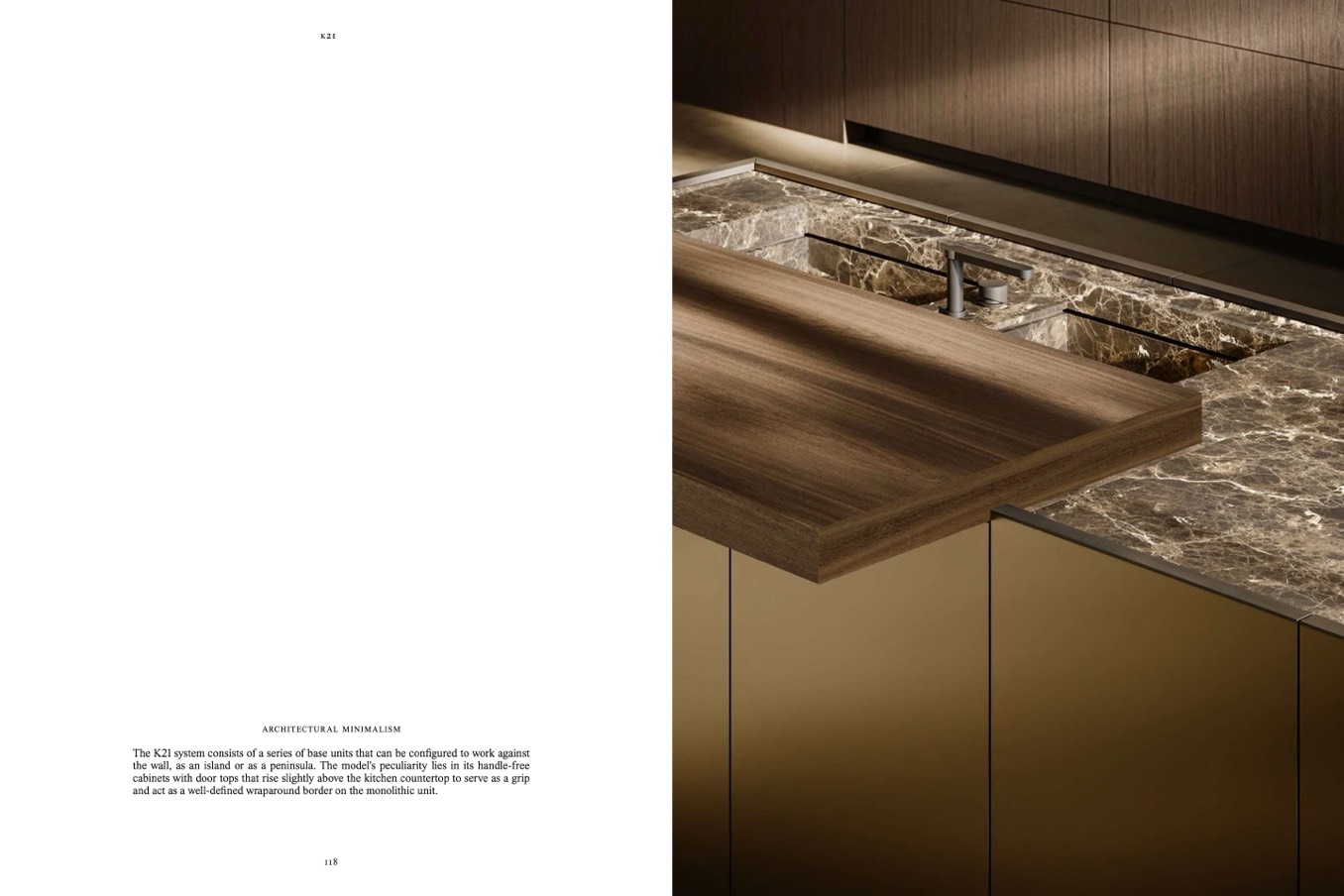 the wall, as an island or as a peninsula. The model's peculiarity lies in its handle-free