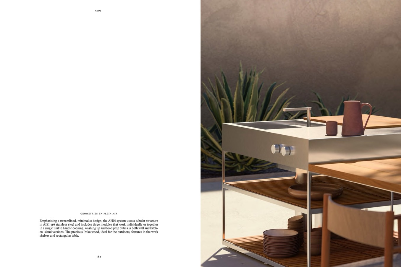 en island versions. The precious Iroko wood, ideal for the outdoors, features in the work