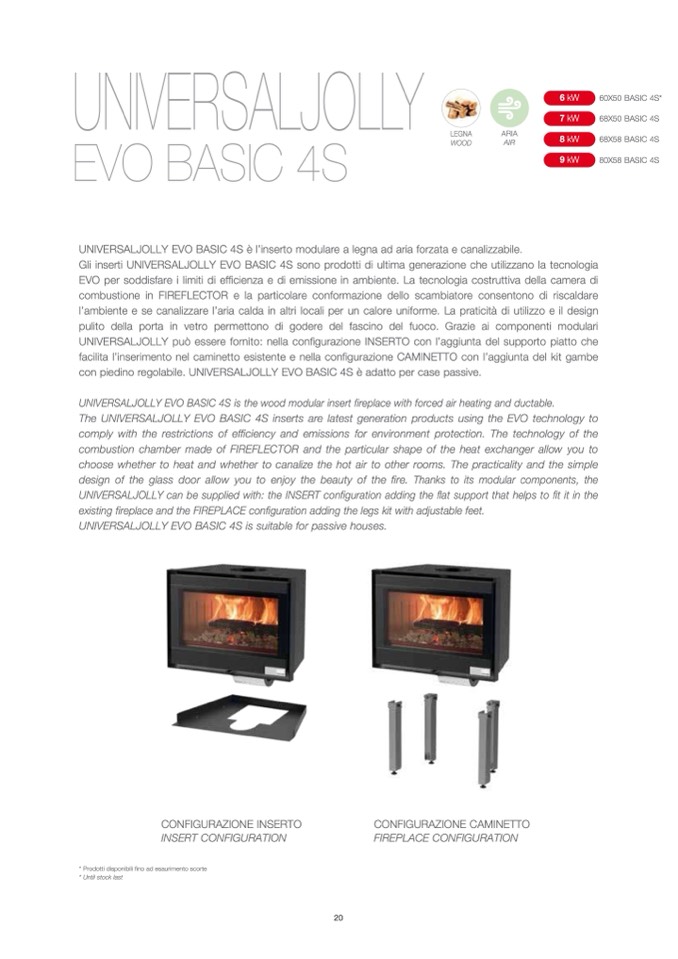 UNIVERSALJOLLY EVO BASIC 4S is the wood modular insert fireplace with forced air heating and ductable.