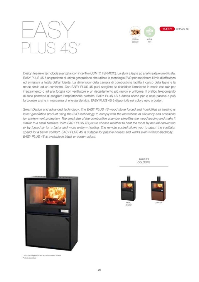 funzionare anche in mancanza di energia elettrica. EASY PLUS 4S è disponibile nel colore nero o corten.