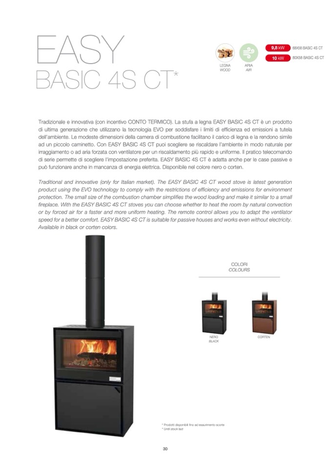 Traditional and innovative (only for Italian market). The EASY BASIC 4S CT wood stove is latest generation