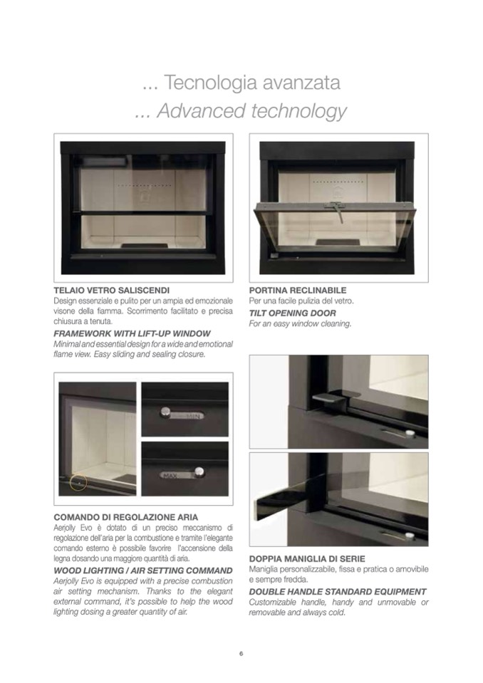 regolazione dell’aria per la combustione e tramite l’elegante