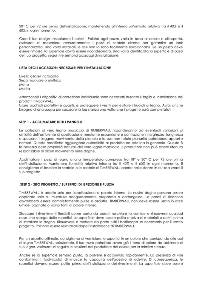 TIMBERWALL è adatto solo per l'applicazione a parete interne. Le nostre doghe possono essere
