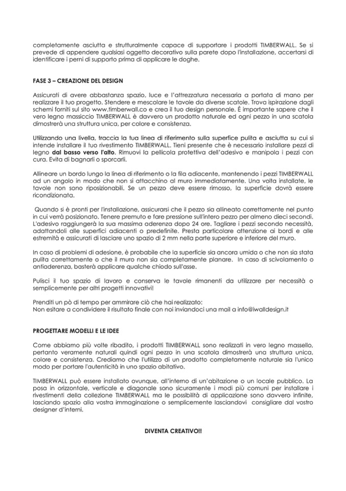 schemi forniti sul sito www.timberwall.co e crea il tuo design personale. È importante sapere che il