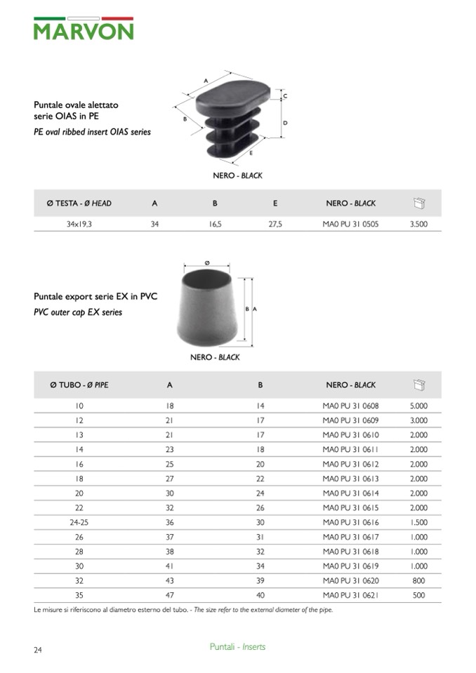 Le misure si riferiscono al diametro esterno del tubo. - The size refer to the external diameter of the pipe.