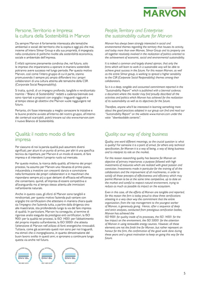 di qualità. In particolare, Marvon ha conseguito, al termine di