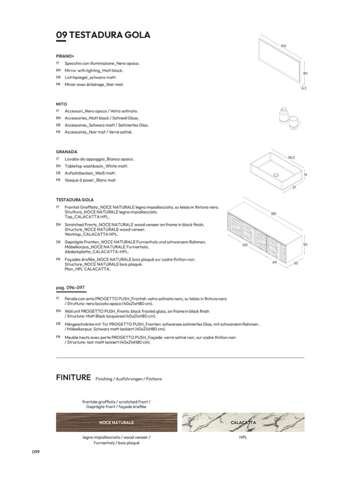 Frontali Graffiato_NOCE NATURALE legno impiallacciato, su telaio in finitura nero