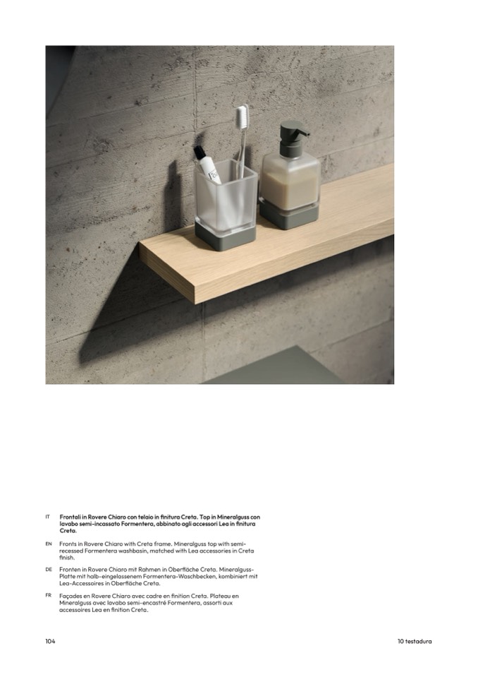 recessed Formentera washbasin, matched with Lea accessories in Cret