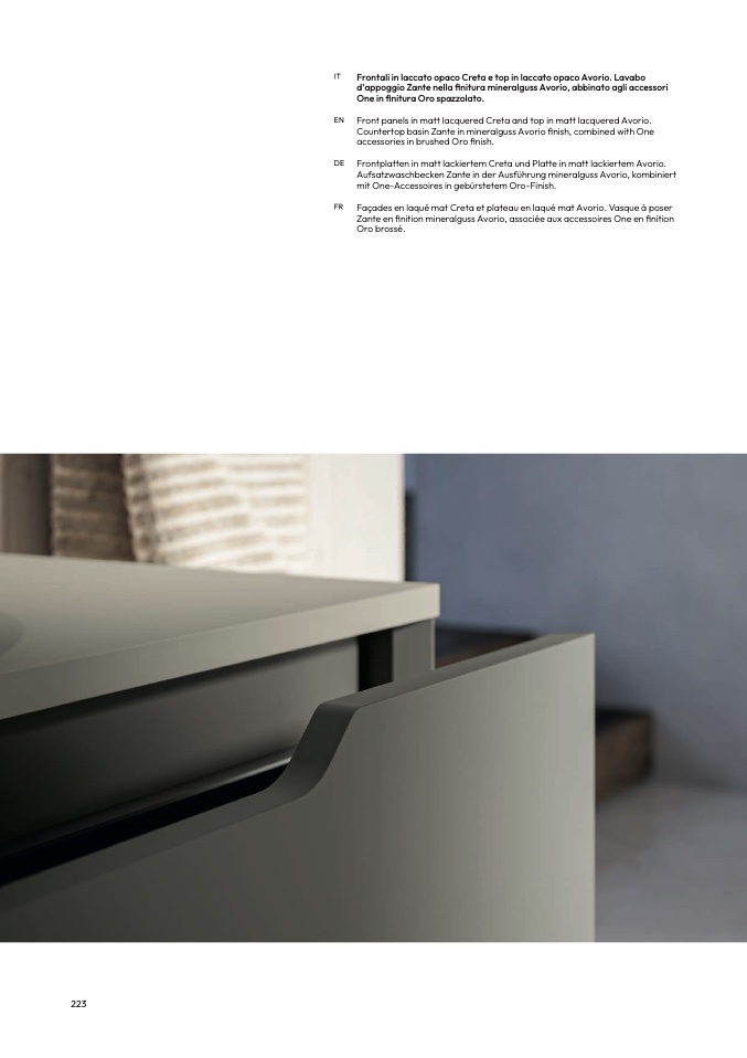 Façades en laqué mat Creta et plateau en laqué mat Avorio. Vasque à poser