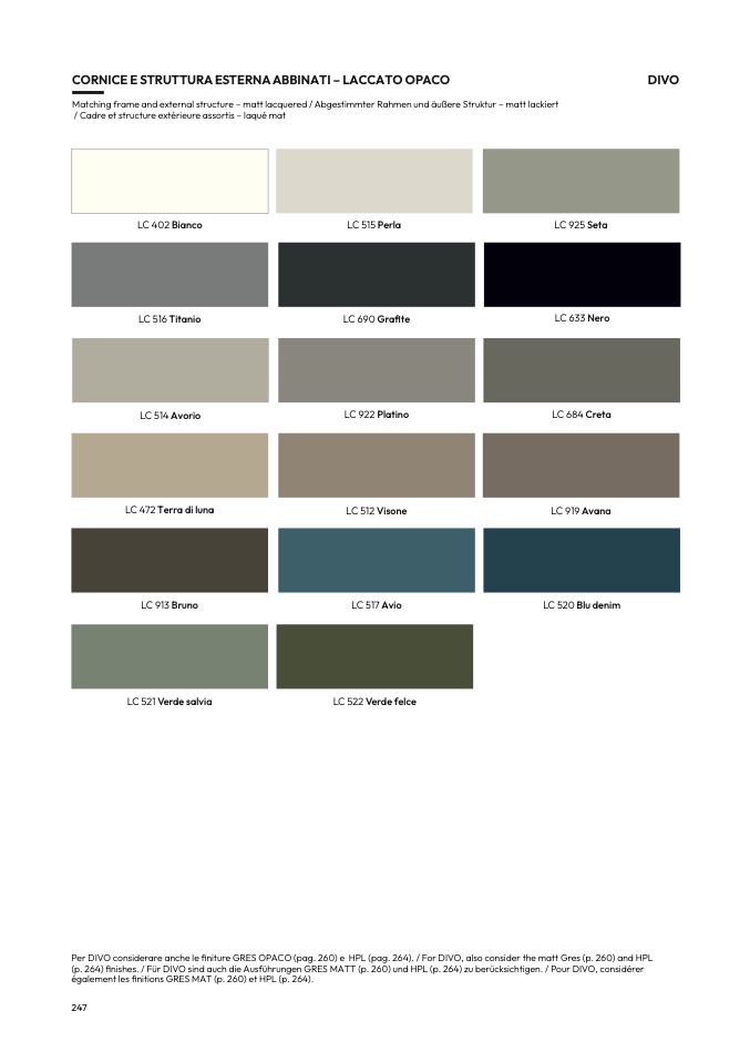 (p. 264) finishes. / Für DIVO sind auch die Ausführungen GRES MATT (p. 260) und HPL (p. 264) zu berücksichtigen. / Pour DIVO, considérer