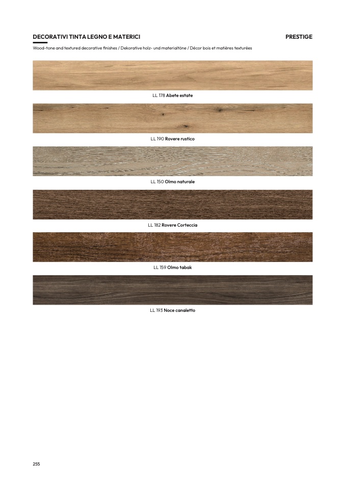 Wood-tone and textured decorative finishes / Dekorative holz- und materialtöne / Décor bois et matières texturée