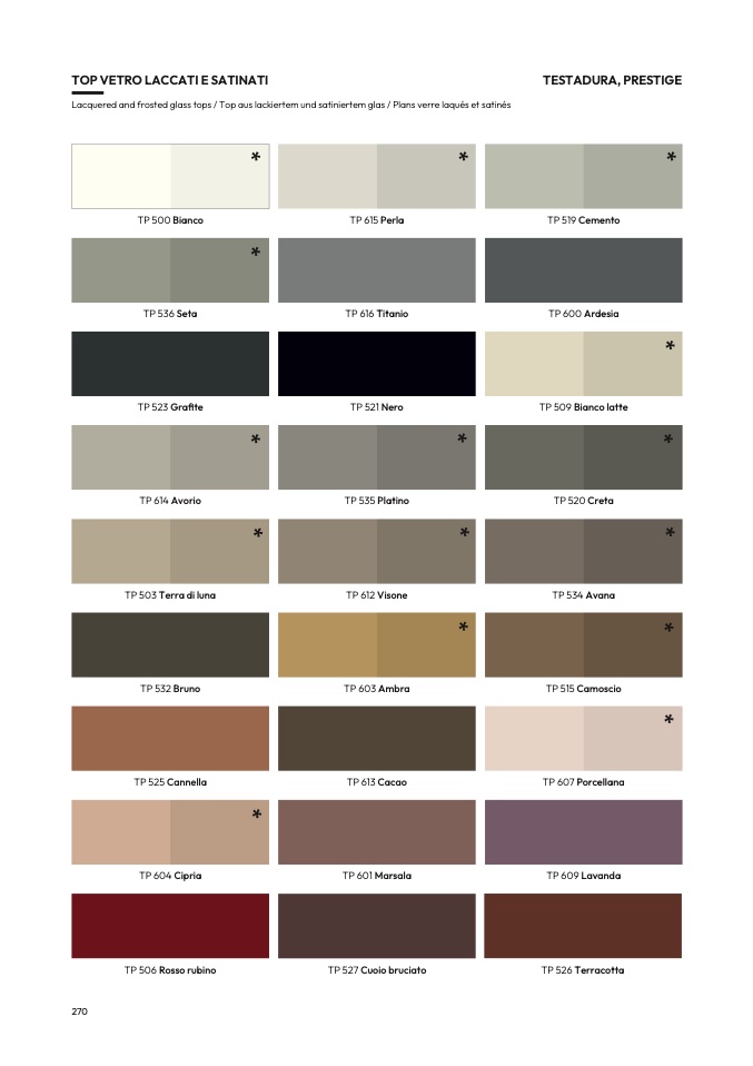 Lacquered and frosted glass tops / Top aus lackiertem und satiniertem glas / Plans verre laqués et satinés