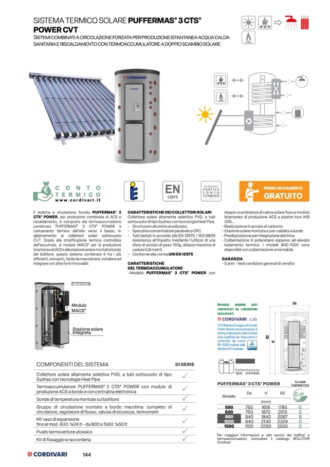 - Tubi testati in accordo alla EN 12975 / ISO 9806
