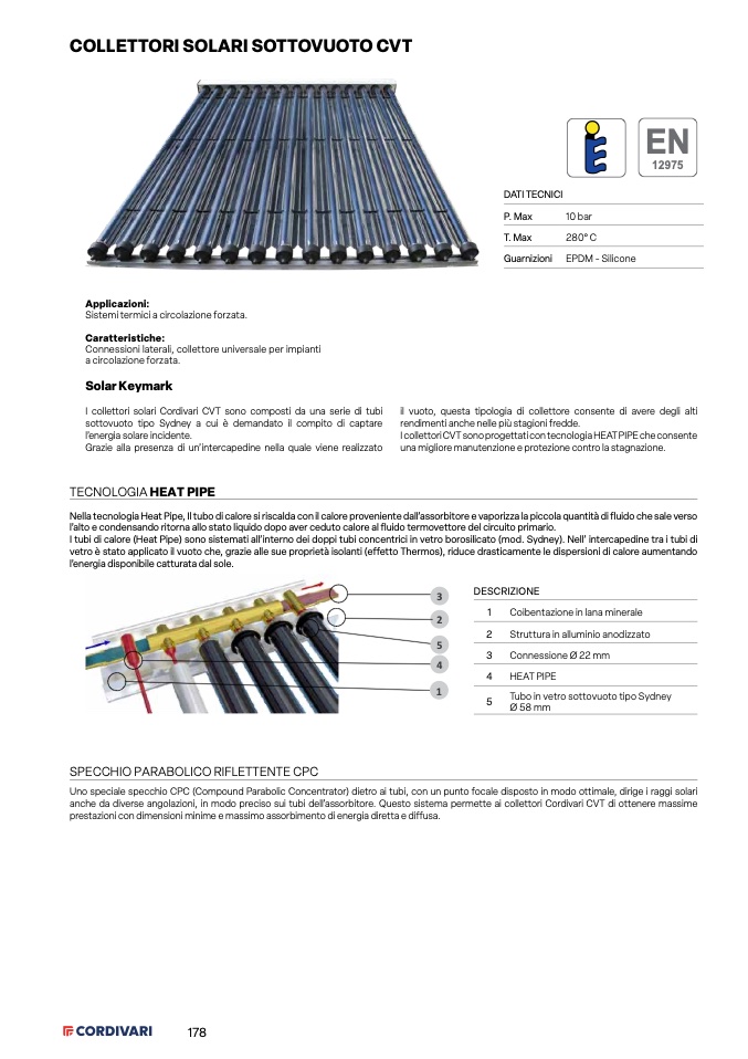 I collettori CVT sono progettati con tecnologia HEAT PIPE che consente