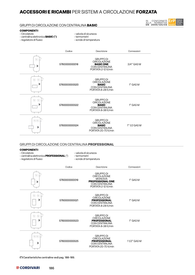 (*) Caratteristiche centraline vedi pag. 188-189.
