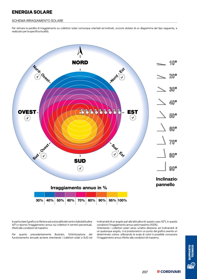 42°) e riporta l’irraggiamento annuo sui collettori in termini percentuali,