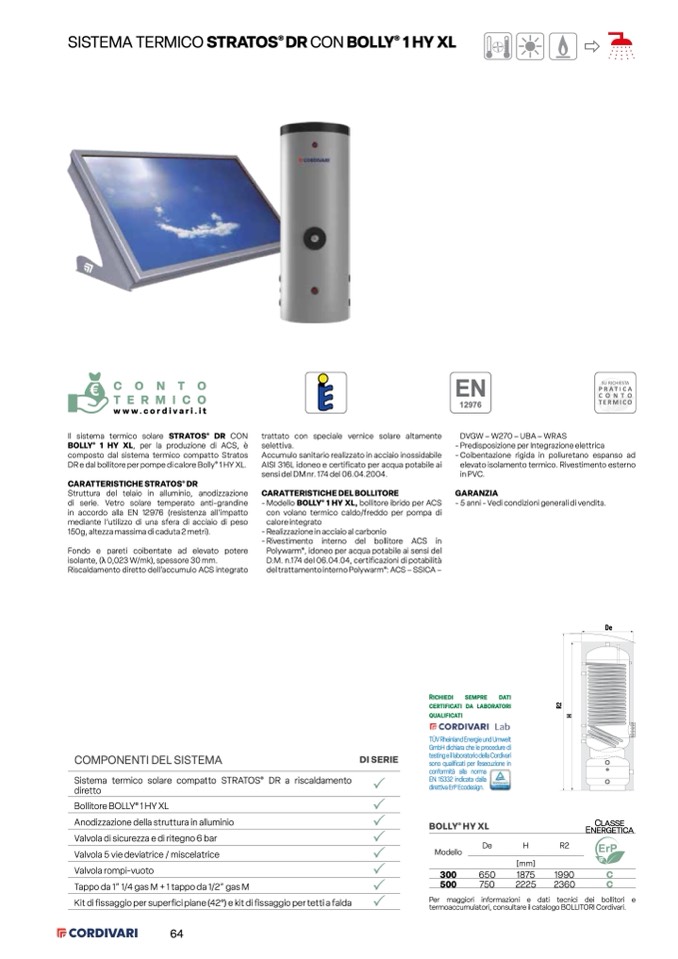 termoaccumulatori, consultare il catalogo BOLLITORI Cordivari.