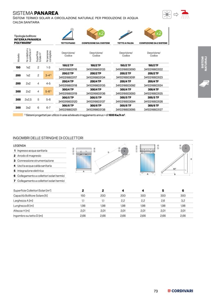 Sistemi progettati per utilizzo in aree ad elevato irraggiamento annuo > di 1600 Kw/h m