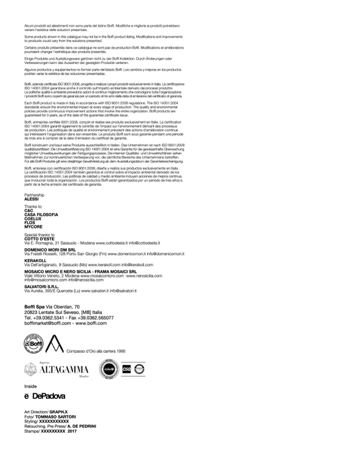Alcuni prodotti ed allestimenti non sono parte del listino Boffi. Modifiche e migliorie ai prodotti potrebbero