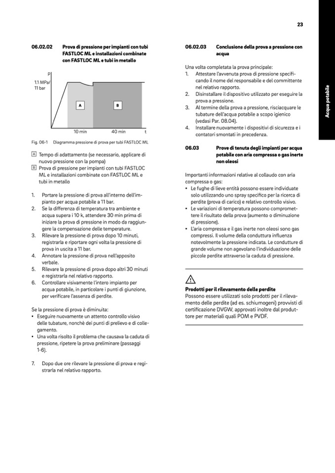 Diagramma pressione di prova per tubi FASTLOC ML