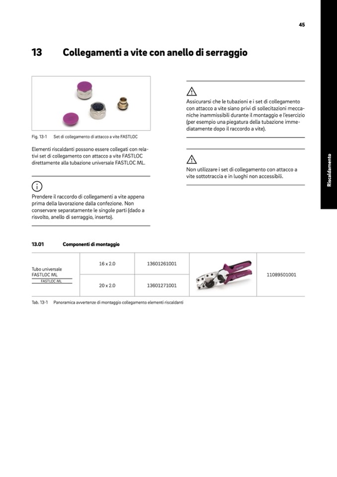 Tab. 13-1 Panoramica avvertenze di montaggio collegamento elementi riscaldanti