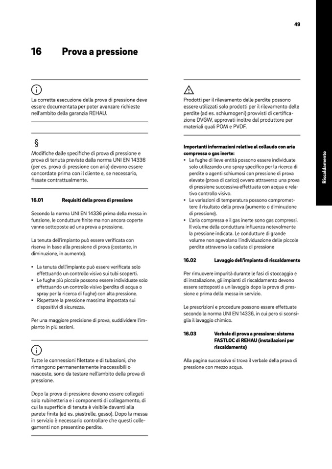 prova di tenuta previste dalla norma UNI EN 14336
