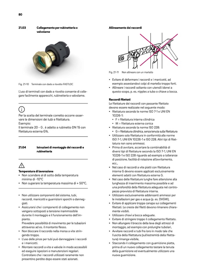 ▪ Montare raccordi a vite e valvole in modo accessibili