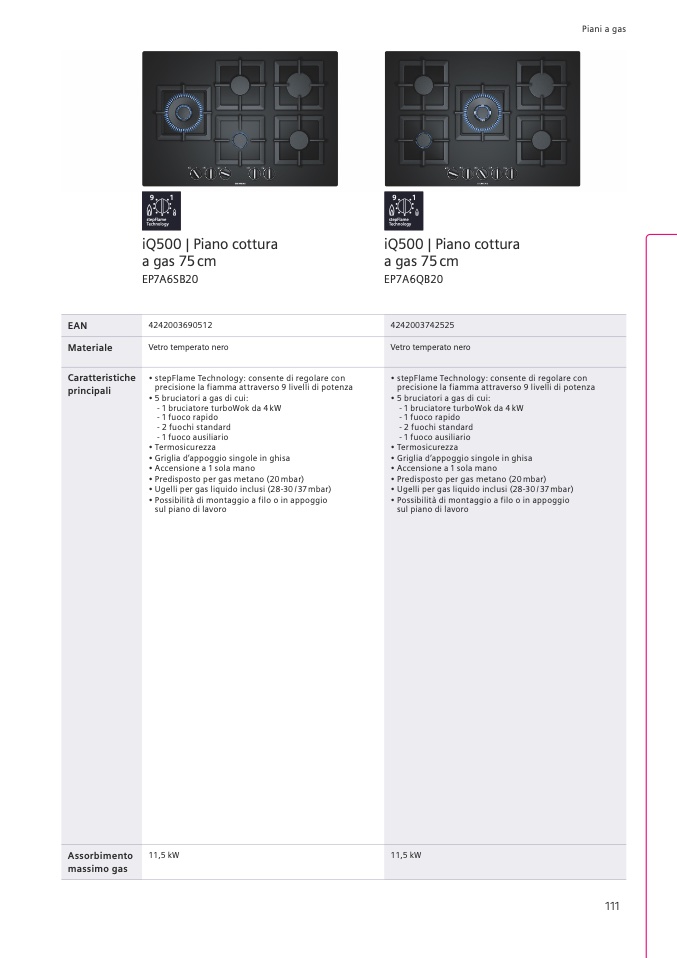 • Predisposto per gas metano (20 mbar)