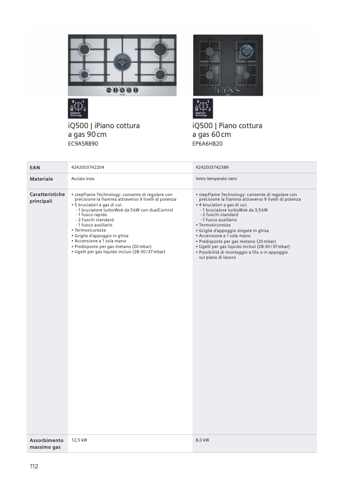 • Ugelli per gas liquido inclusi (28-30 / 37 mbar)