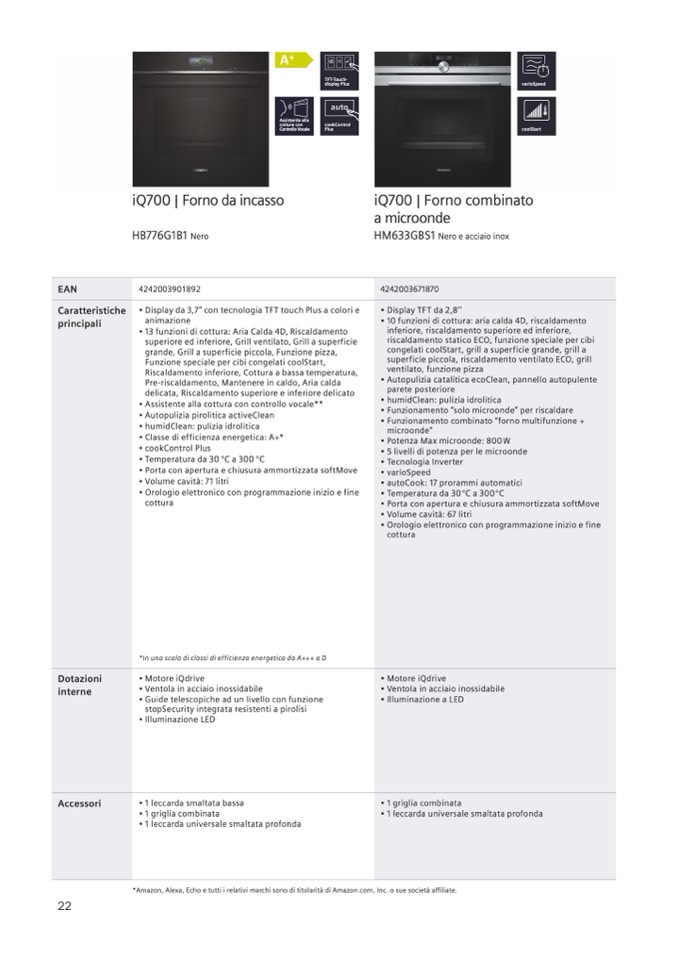 • Assistente alla cottura con controllo vocale**
