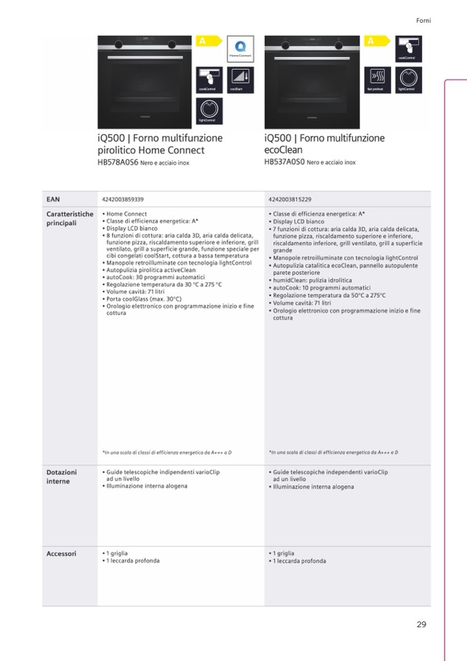 • Classe di efficienza energetica: A*