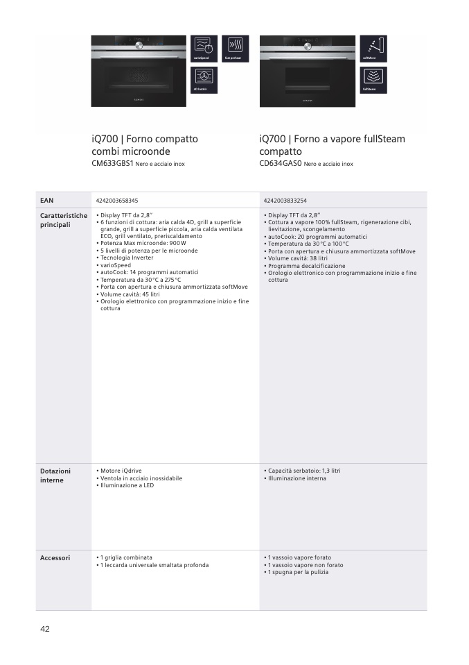 • Cottura a vapore 100% fullSteam, rigenerazione cibi,