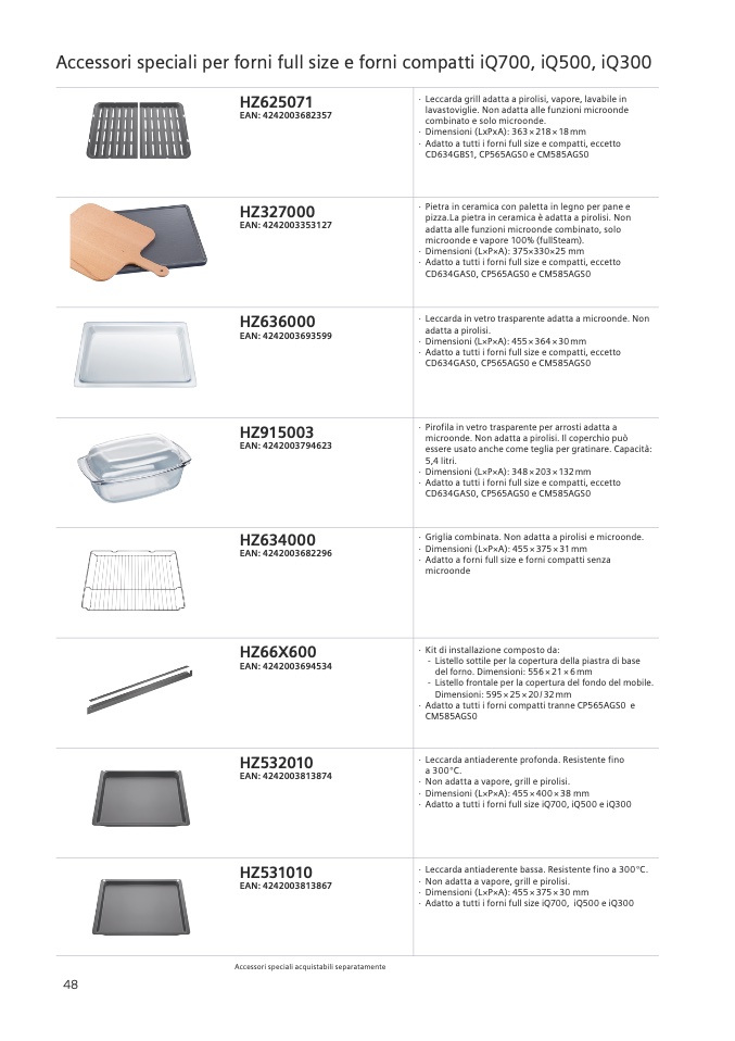 · Adatto a tutti i forni full size iQ700, iQ500 e iQ300