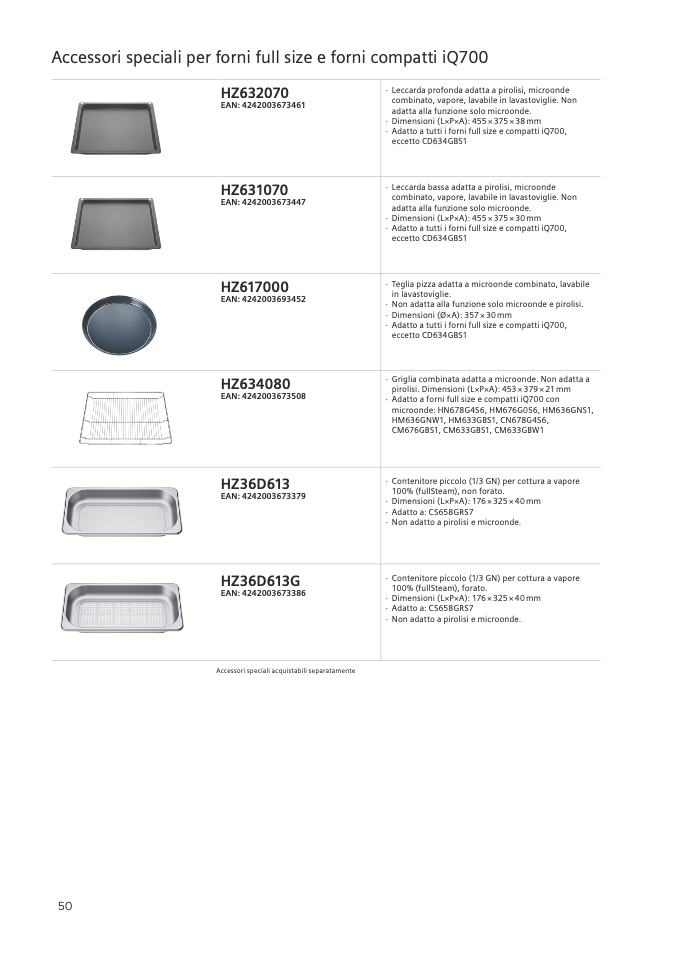 · Adatto a tutti i forni full size e compatti iQ700,