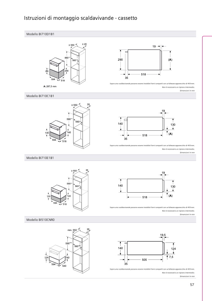 forni con altezza apparecchio 595 mm senza
