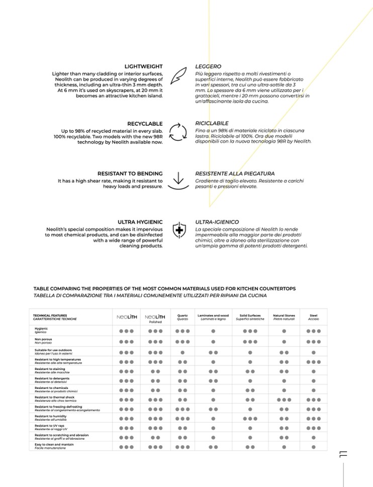 TABELLA DI COMPARAZIONE TRA I MATERIALI COMUNEMENTE UTILIZZATI PER RIPIANI DA CUCINA