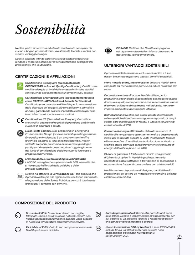 Neolith possiede infinite caratteristiche di sostenibilità che lo