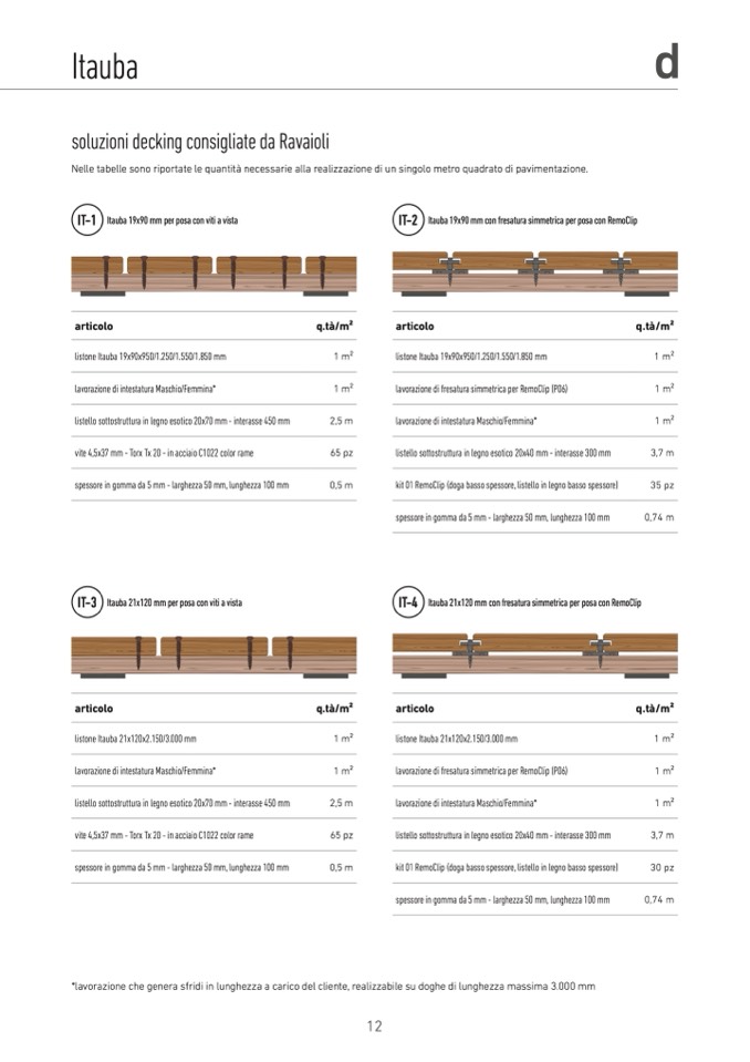 *lavorazione che genera sfridi in lunghezza a carico del cliente, realizzabile su doghe di lunghezza massima 3.000 mm