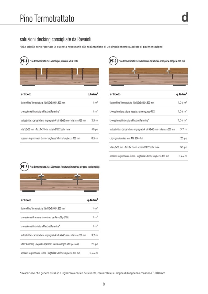 *lavorazione che genera sfridi in lunghezza a carico del cliente, realizzabile su doghe di lunghezza massima 3.000 mm