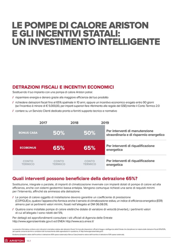 La presente informativa contiene solo indicazioni orientative relative alle detrazioni fiscali. Si rinvia alle disposizioni ufficiali di legge e dell’Agenzia delle Entrate che disciplinano la materia delle detrazioni fiscali 65%/50%,