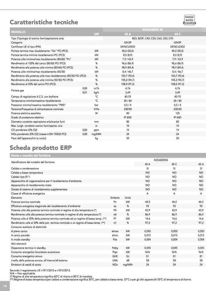 (*) Regime di alta temperatura significa 60°C di ritorno e 80°C di mandata.