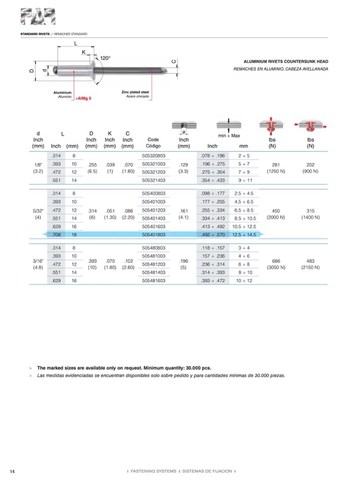 REMACHES EN ALUMINIO, CABEZA AVELLANADA