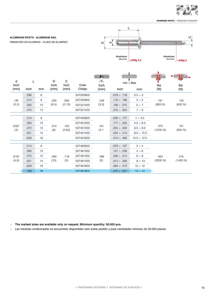 STANDARD RIVETS / REMACHES STANDARD