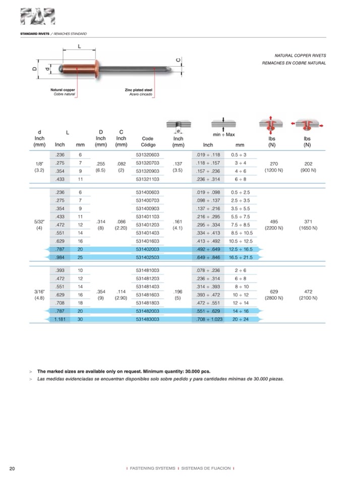 Las medidas evidenciadas se encuentran disponibles solo sobre pedido y para cantidades mínimas de 30.000 piezas.