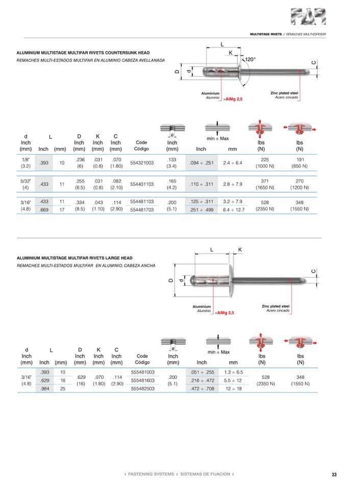 MULTISTAGE RIVETS / REMACHES MULTI-ESPESOR