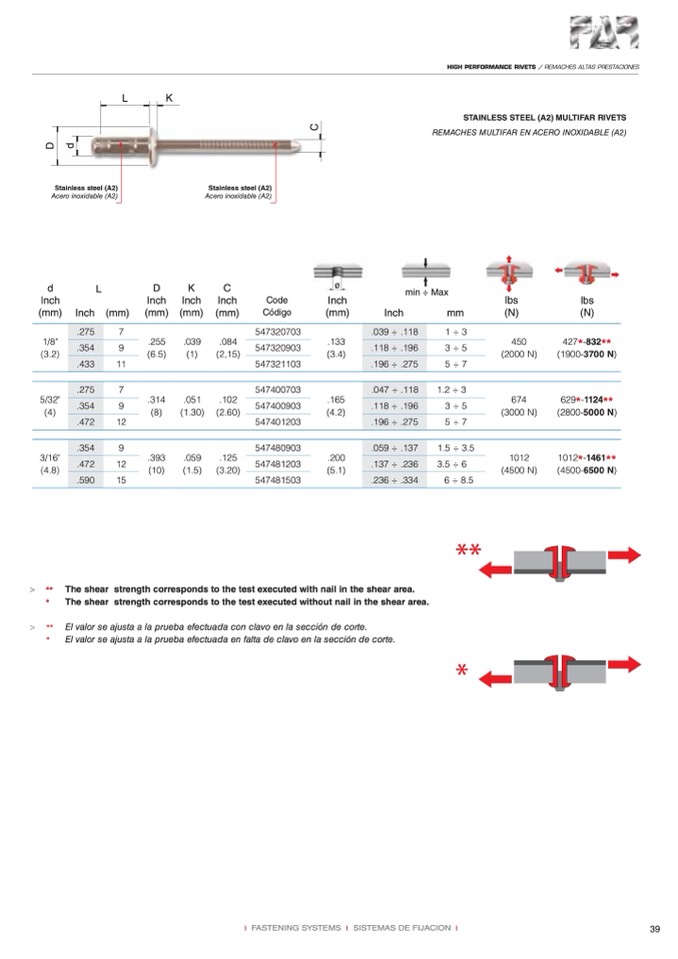 HIGH PERFORMANCE RIVETS / REMACHES ALTAS PRESTACIONES