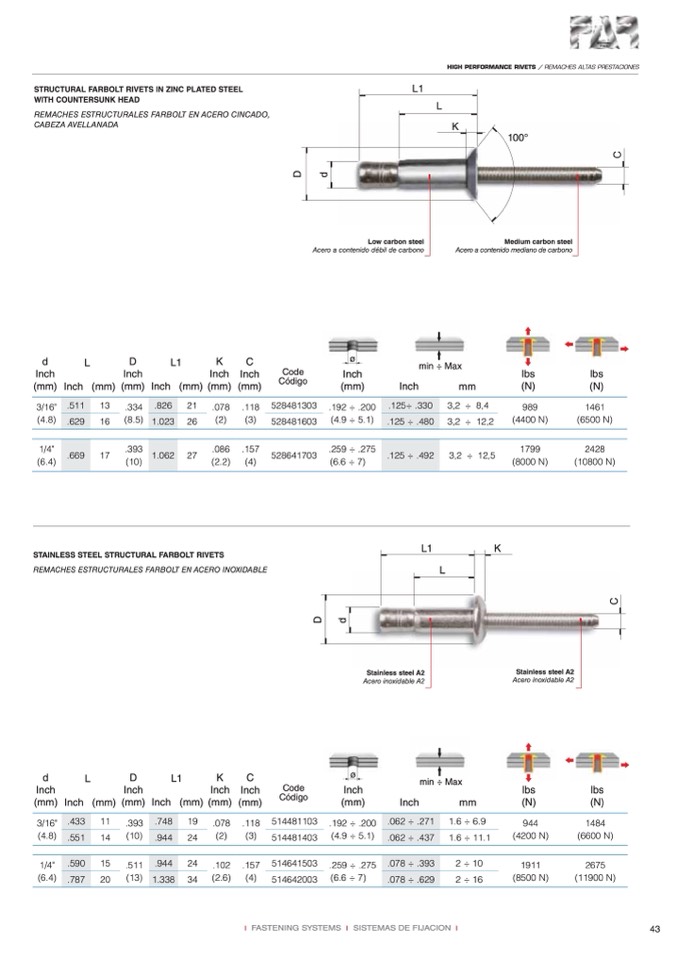 REMACHES ESTRUCTURALES FARBOLT EN ACERO INOXIDABLE