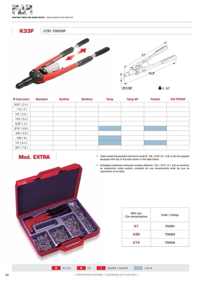RIVETING TOOLS FOR BLIND RIVETS / REMACHADORAS PARA REMACHES