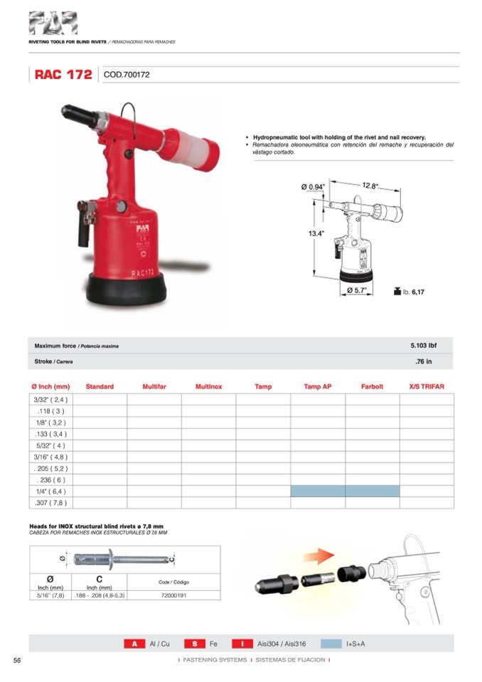 RIVETING TOOLS FOR BLIND RIVETS / REMACHADORAS PARA REMACHES